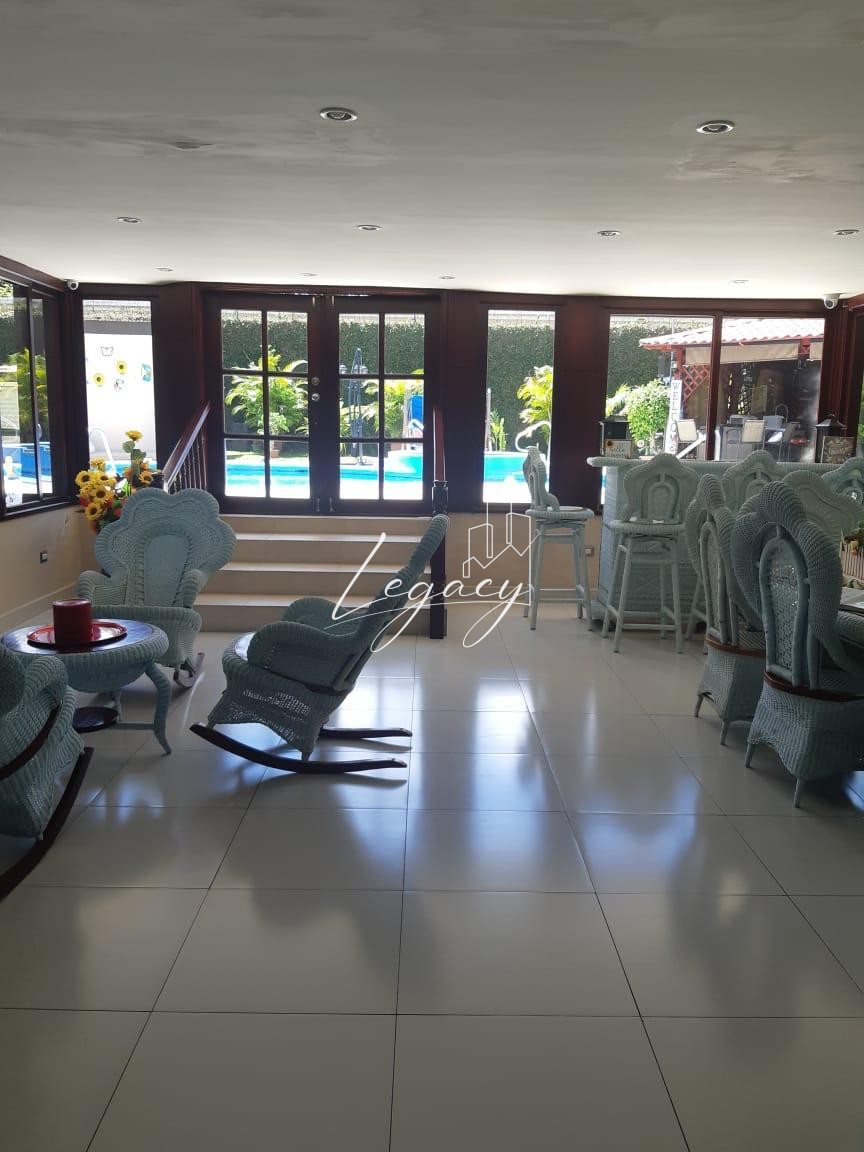 ✅ Área social interna con finos acabados en caoba y amplios ventanales de vidrio
