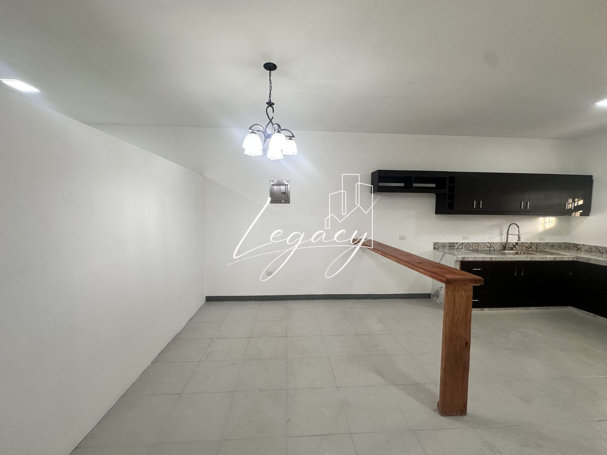 ✅ Concepto abierto: Cocina y comedor integrados con una barra de madera desayunador.
