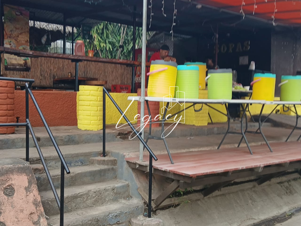 ✅️Rancho restaurante con áreas internas para mesas, cocina, barra y servicio sanitarios.