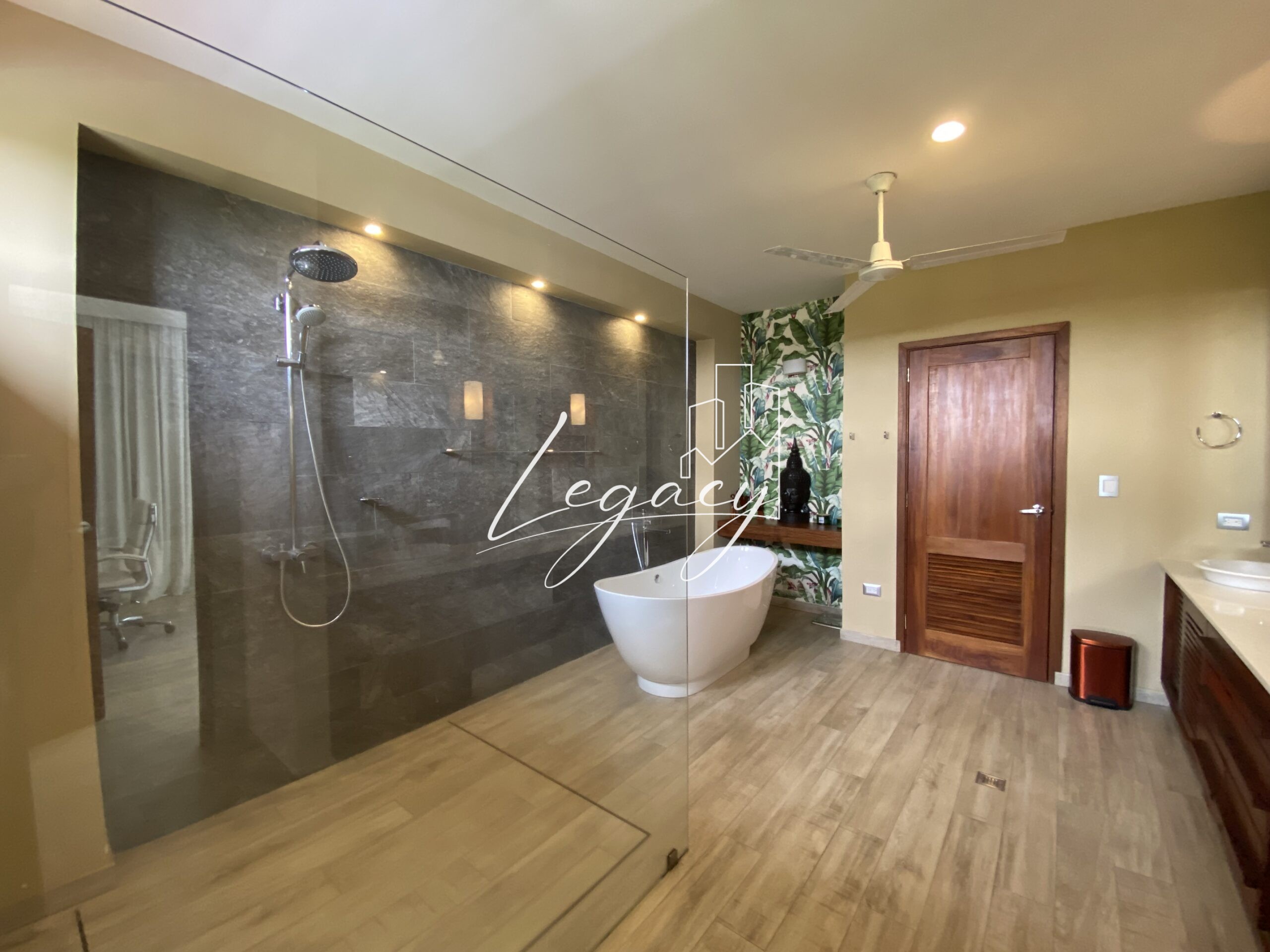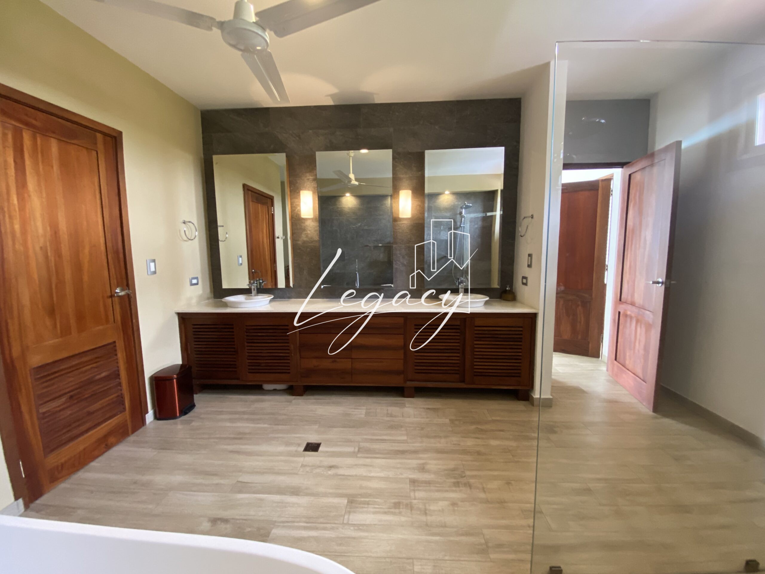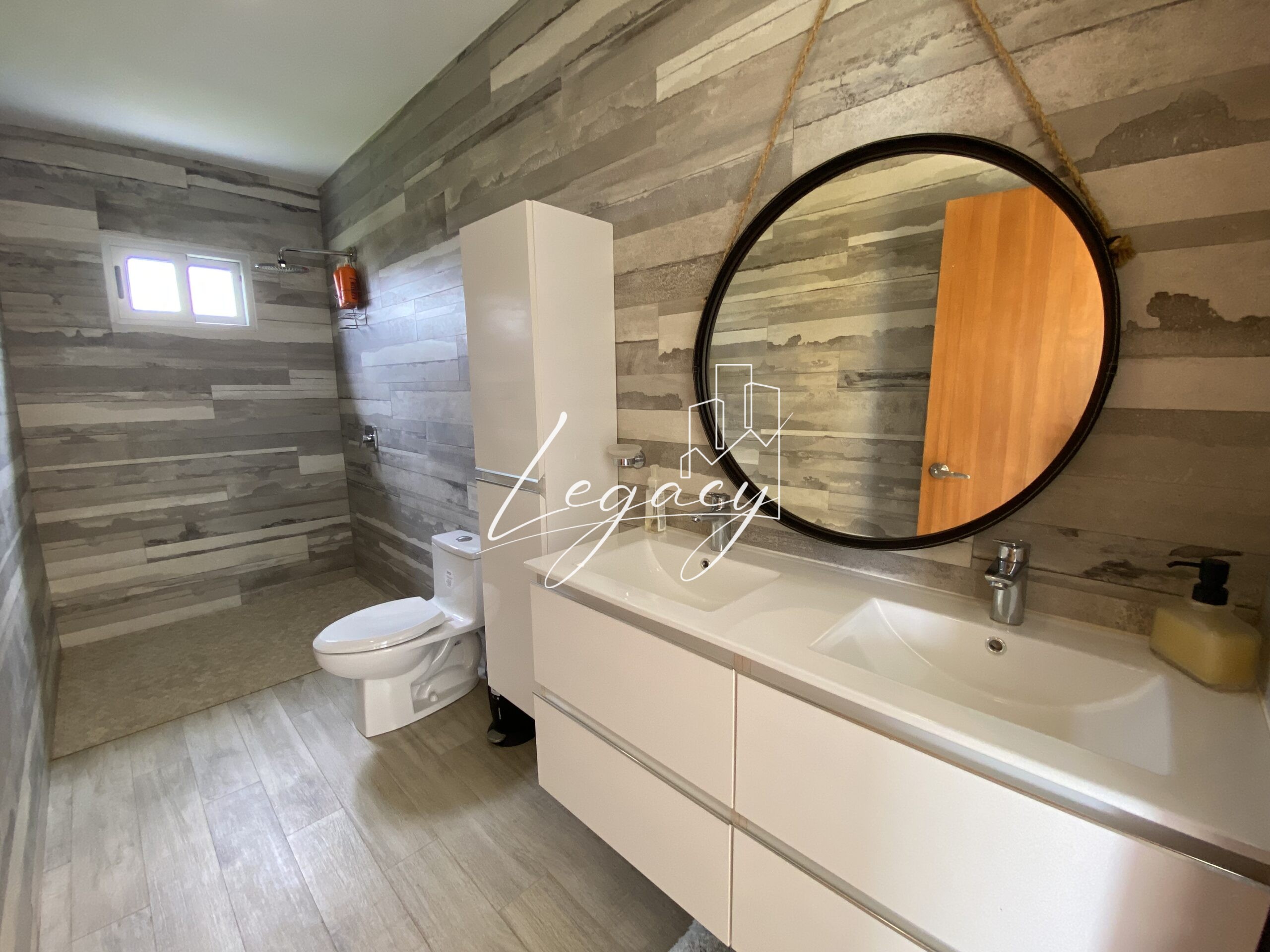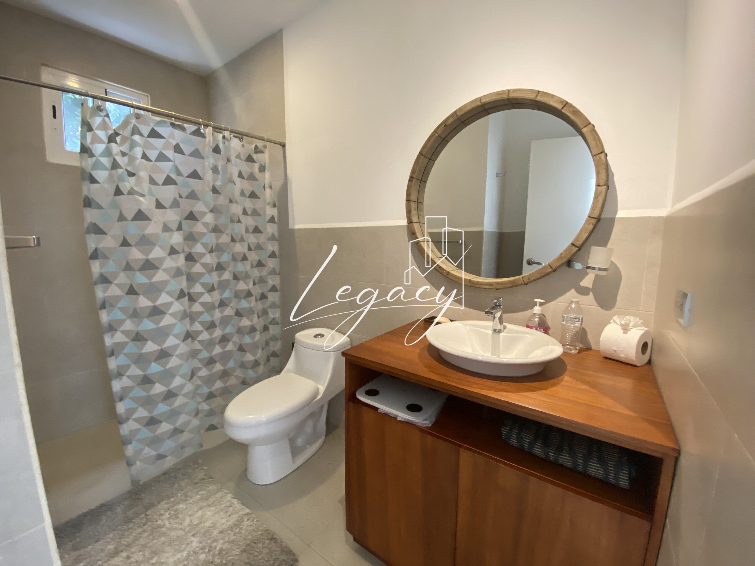 3 habitaciones independientes, amplias y luminosas con AC, abanico de techo y closet. Habitación principal con ducha y tina.