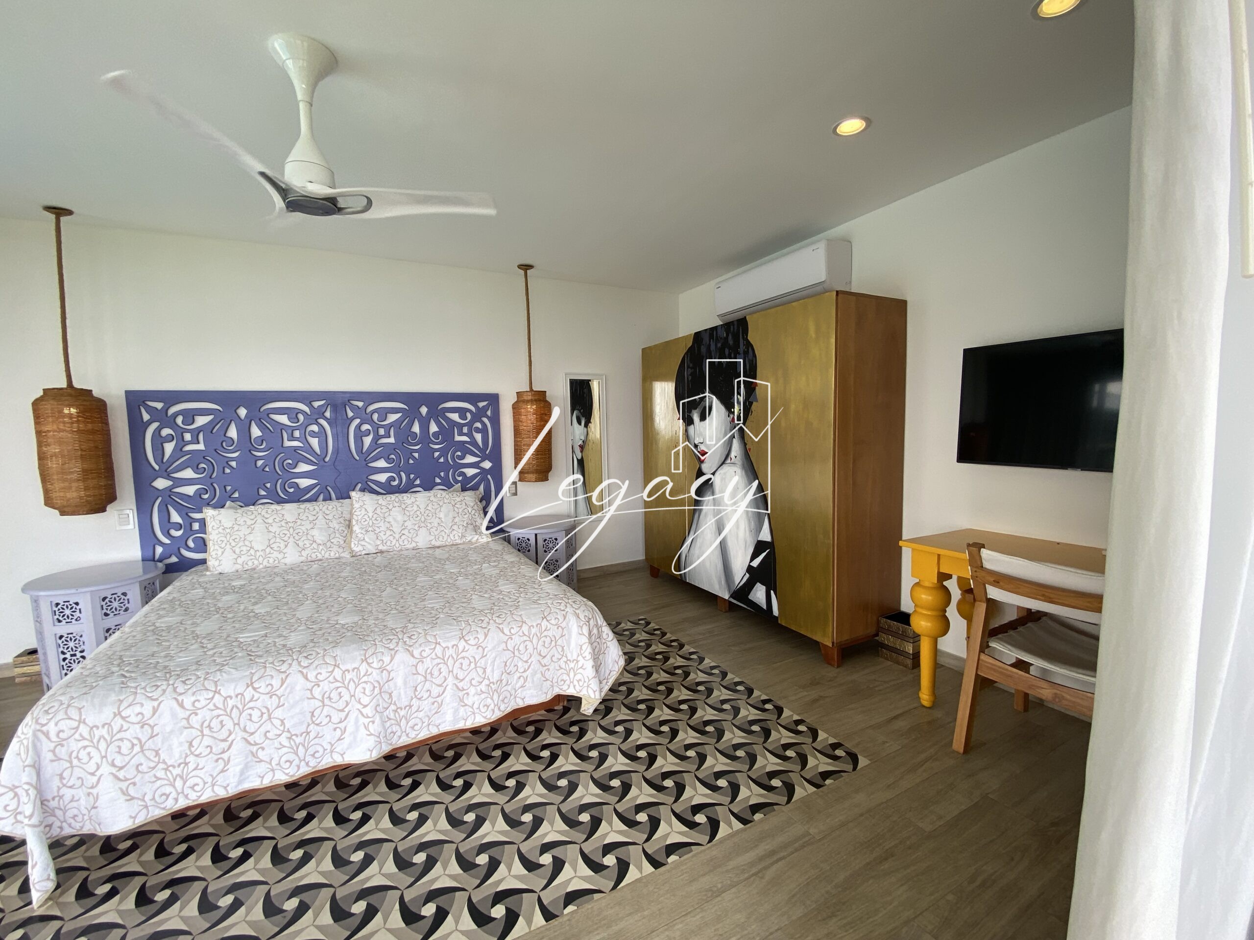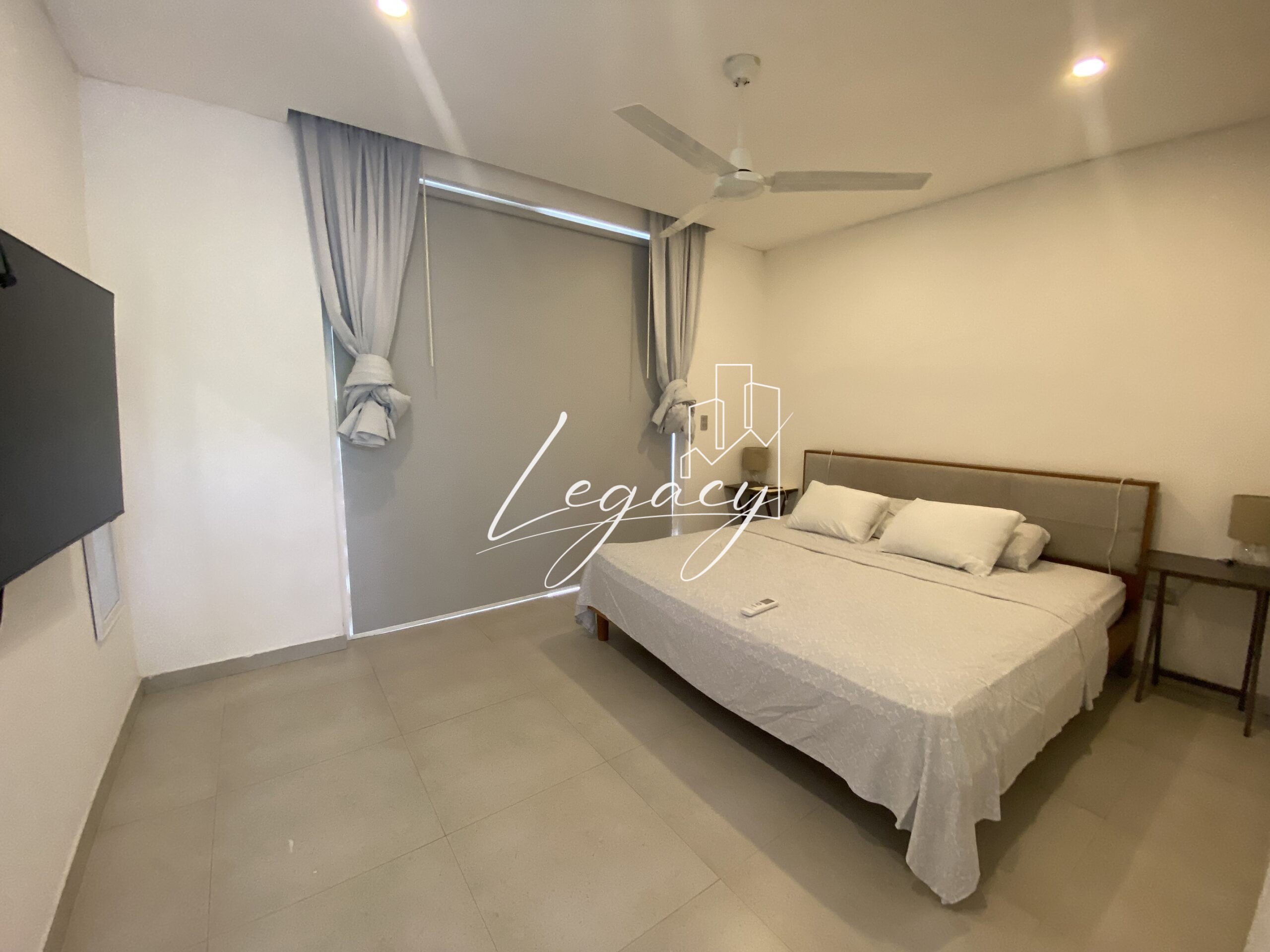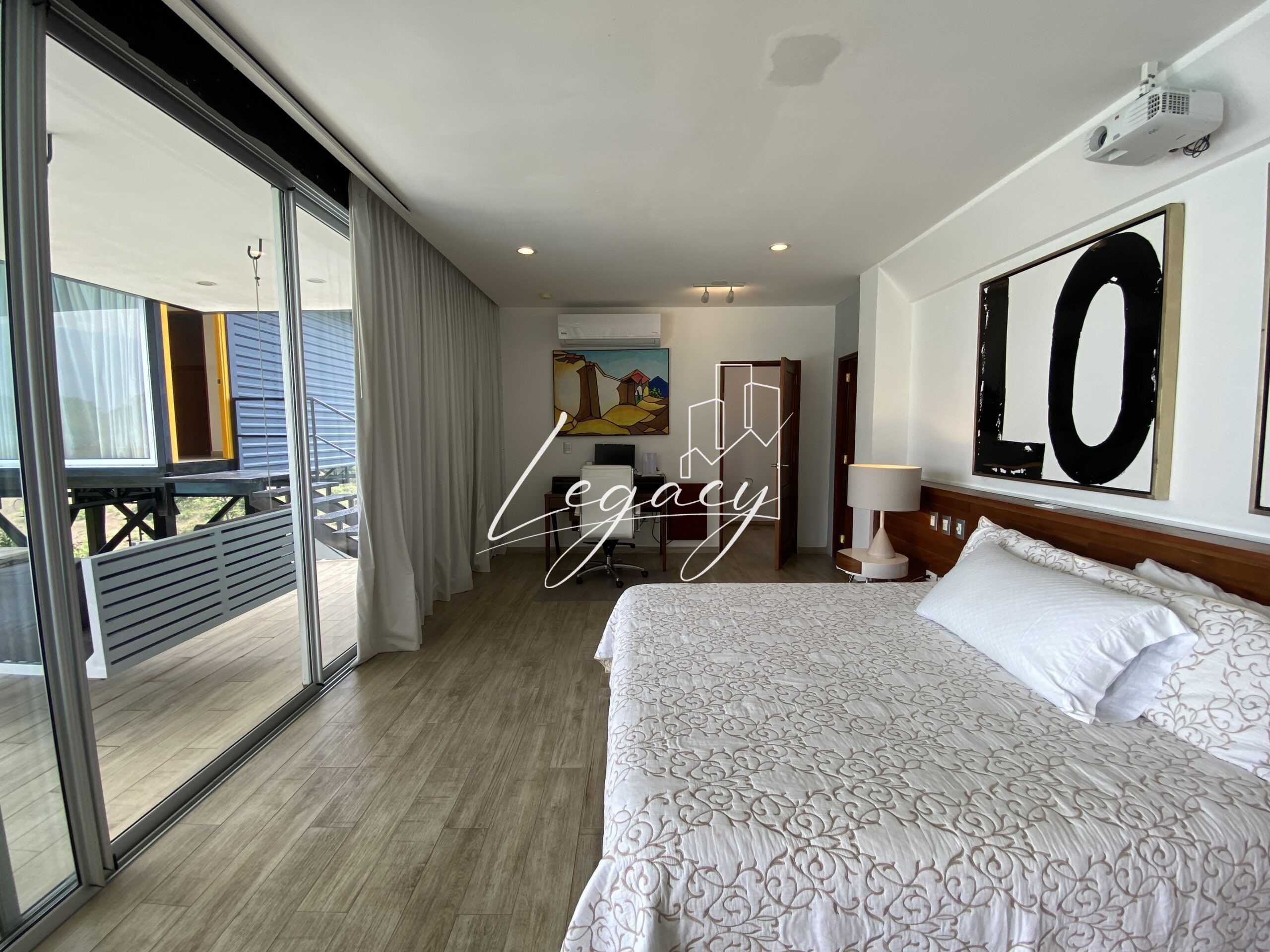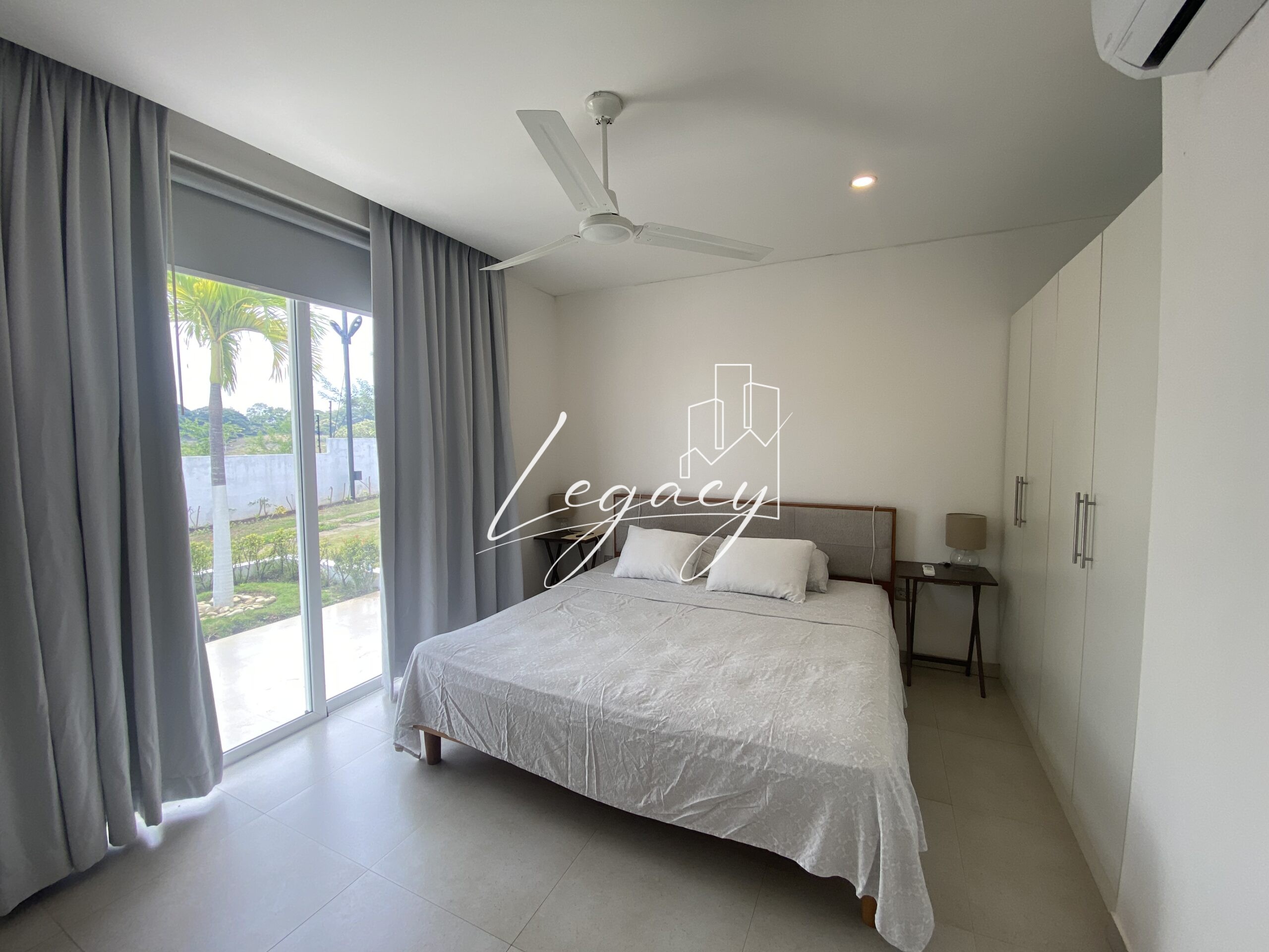 2 habitaciones con balcón, con ventilación cruzada y gran iluminación cada una con AC y abanico de techo.