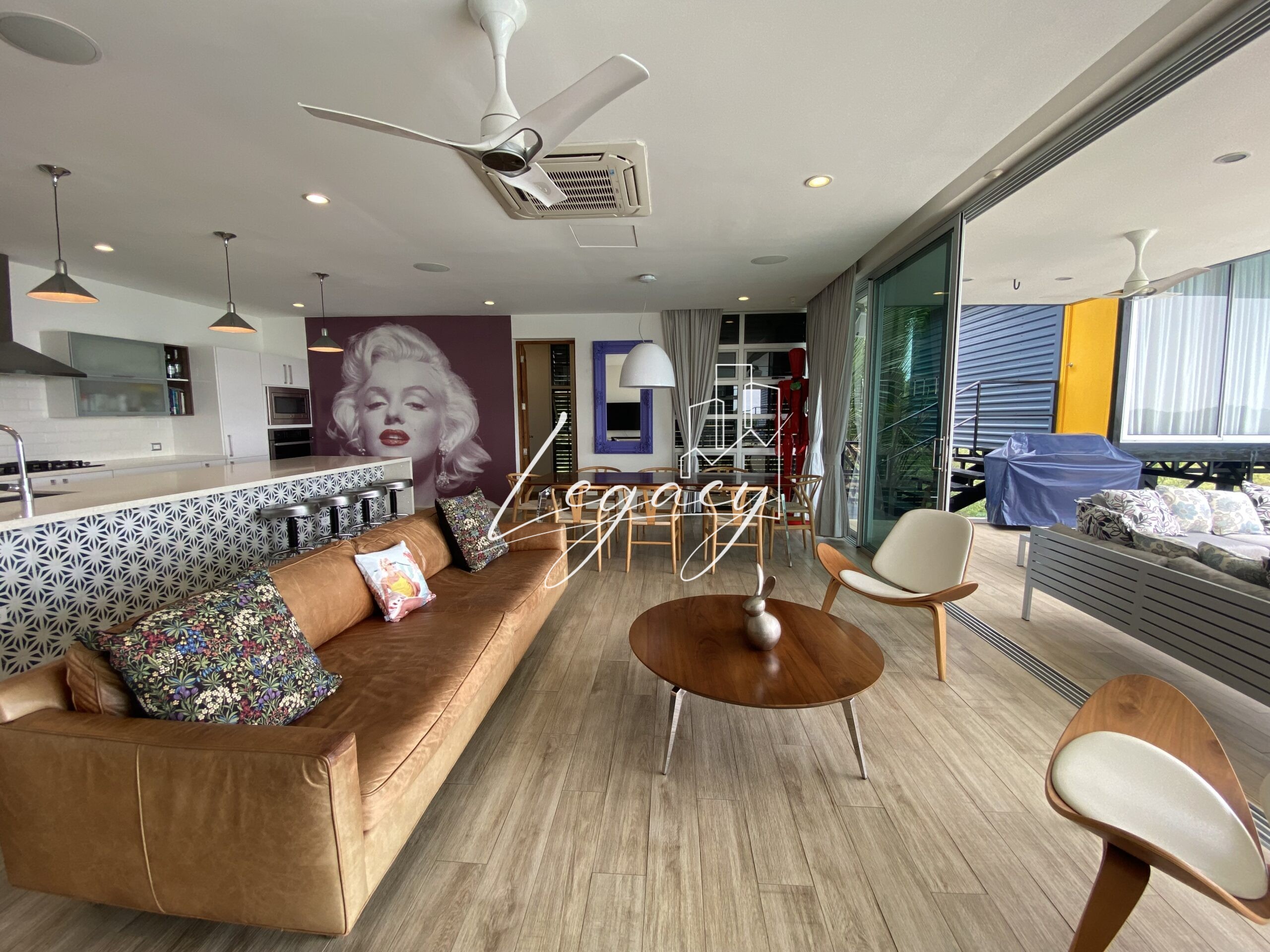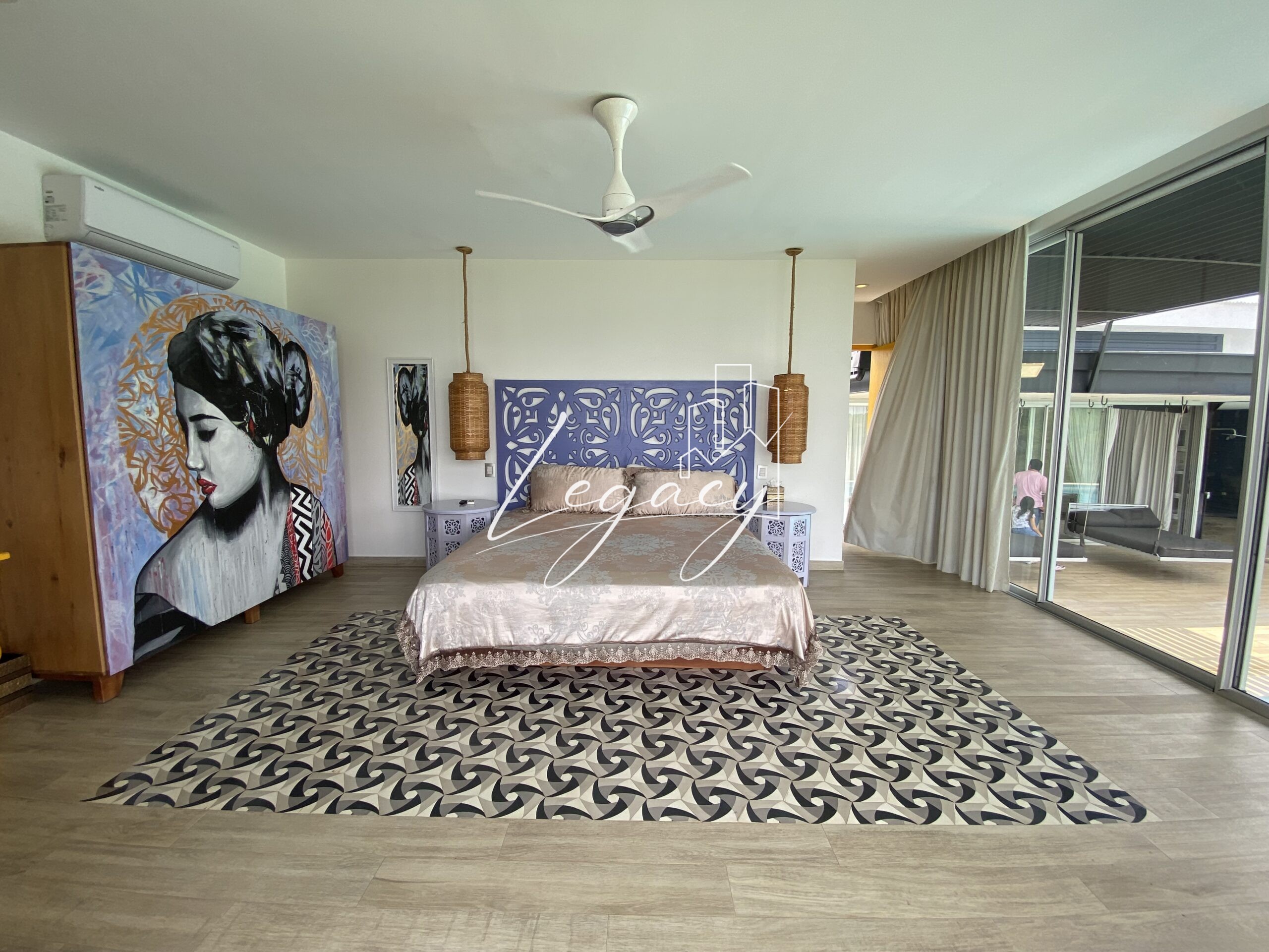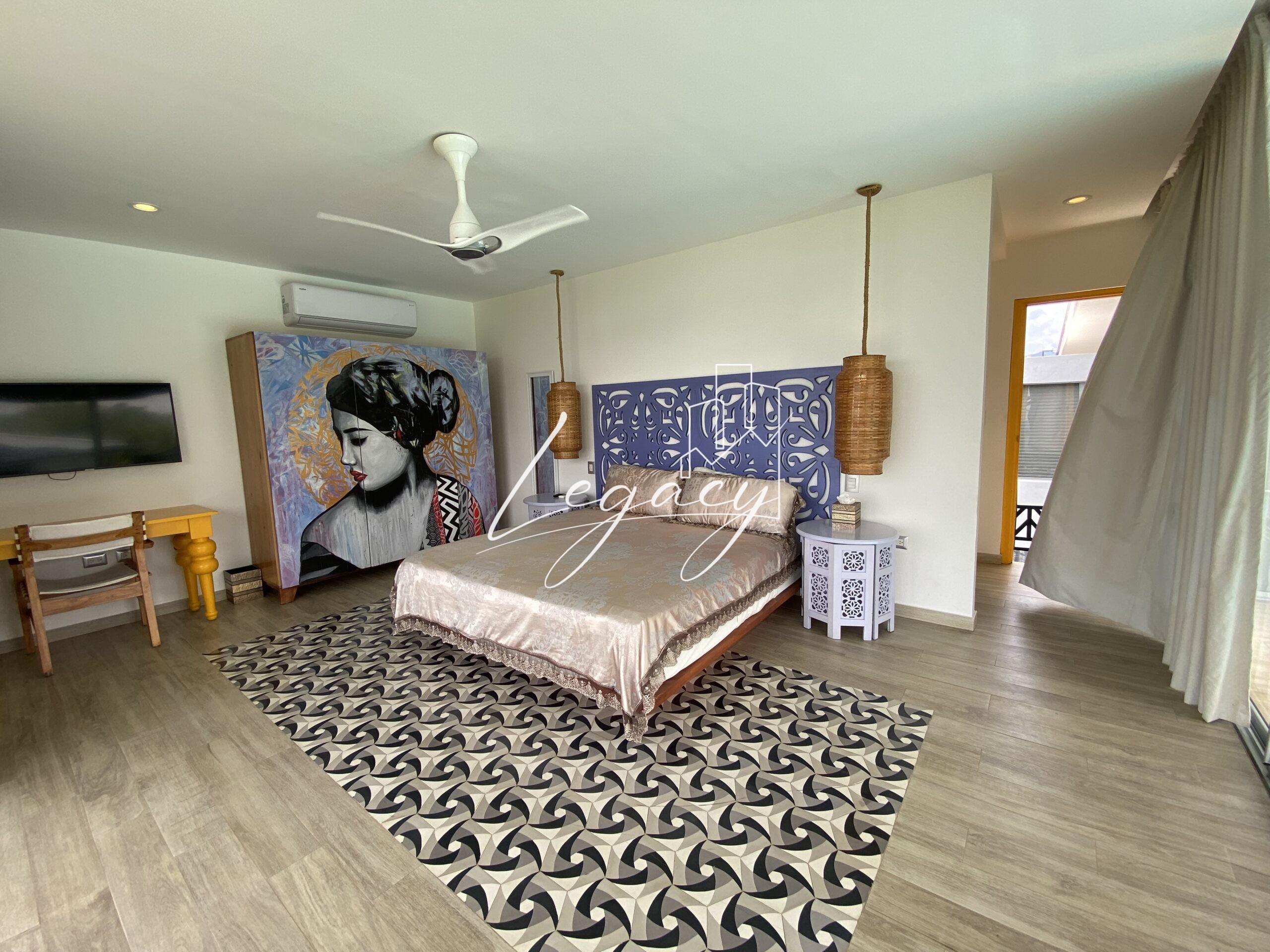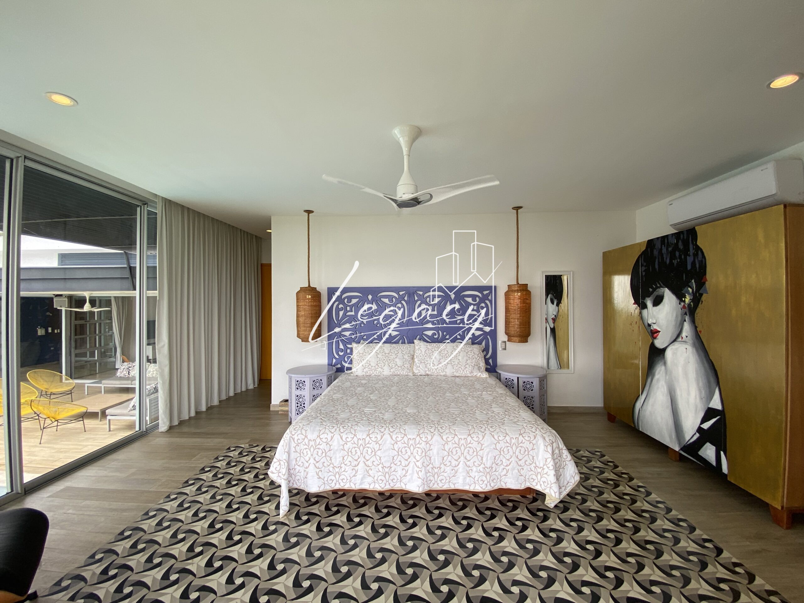 2 habitaciones con balcón, con ventilación cruzada y gran iluminación cada una con AC y abanico de techo.