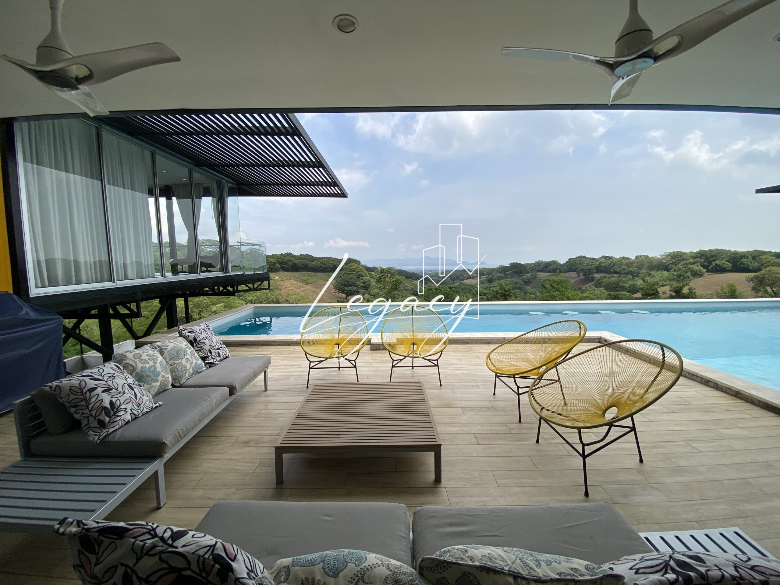 Terraza con vista espectacular al valle y al lago de Managua.